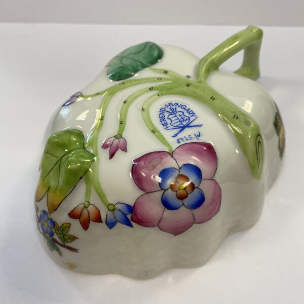 Antik Herendi Viktória mintás levél formájú tálka, alján jelzéssel, hibátlan állapotban, képen látható.