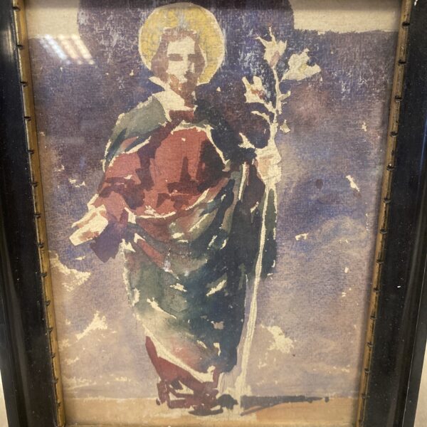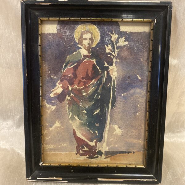 Antik képkeret akvarell képpel. A képen látható állapotban.