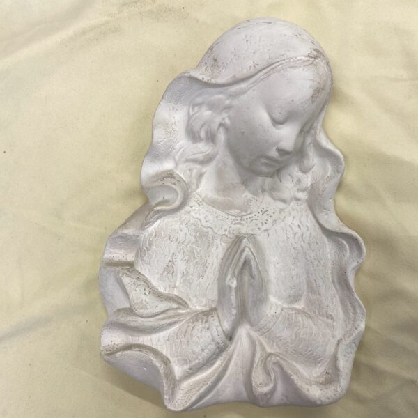 Antik mázatlan porcelán Szűz Mária vagy angyal fali dombormű, 24×18 cm