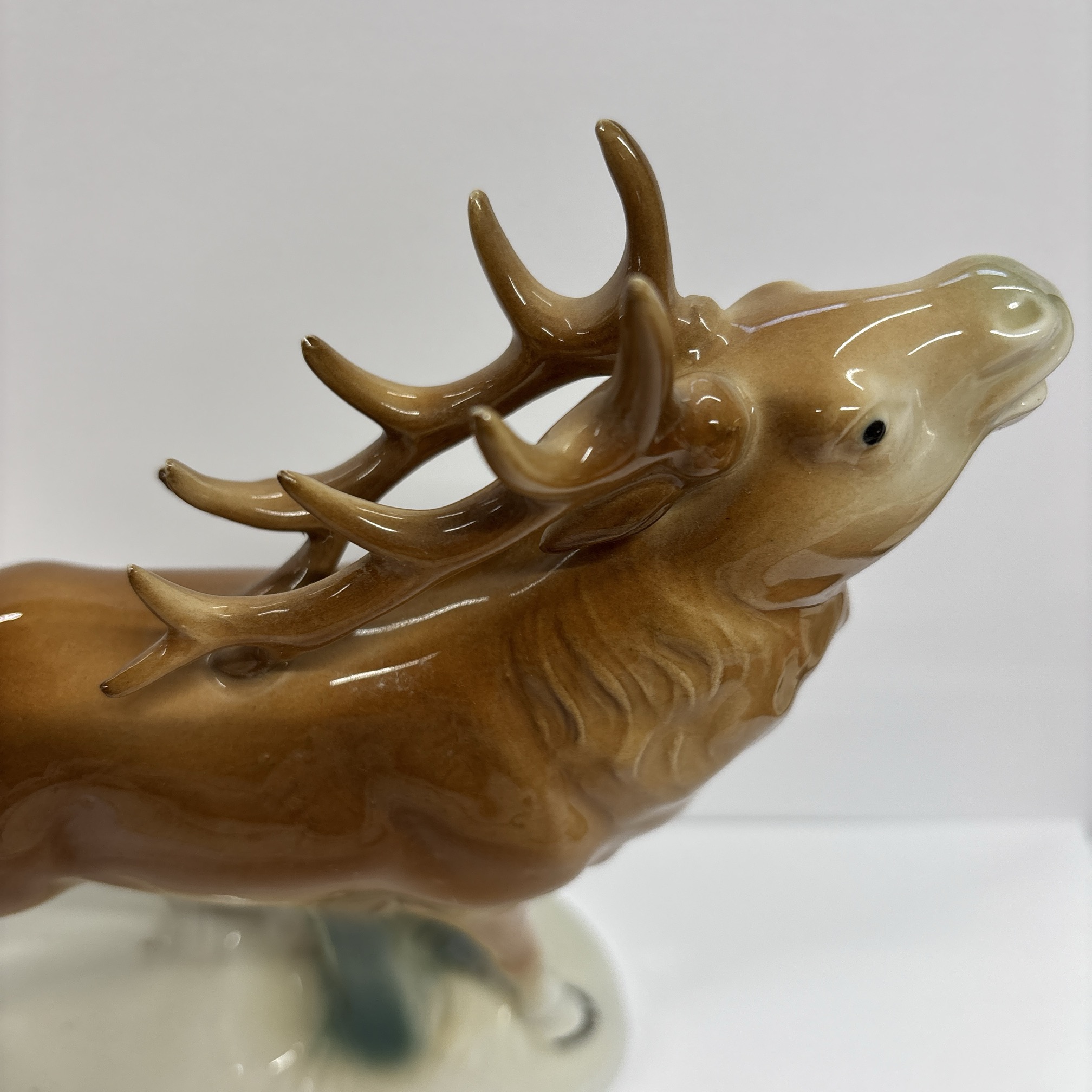 Német porcelán szarvas hibátlan állapotban, alján GDR jelzés, 18×18 cm.