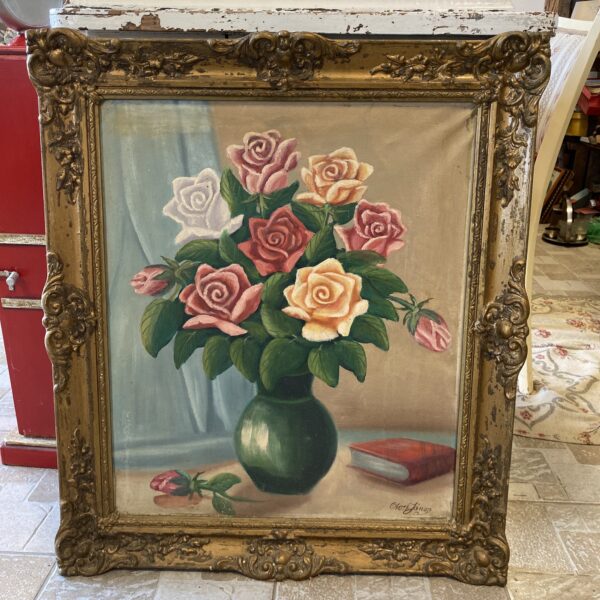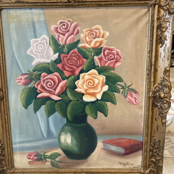 Antik olajfestmény blondel kerettel Orosz János II. Virágcsendélet