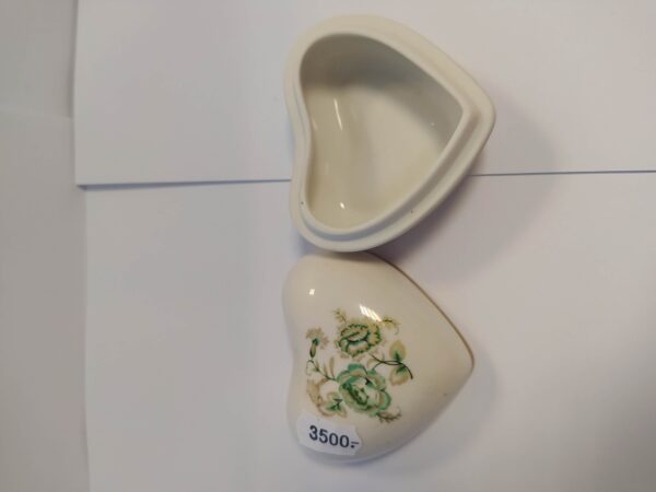 Antik porcelán szív alakú tároló, alján jelzéssel, képen látható állapotban.
