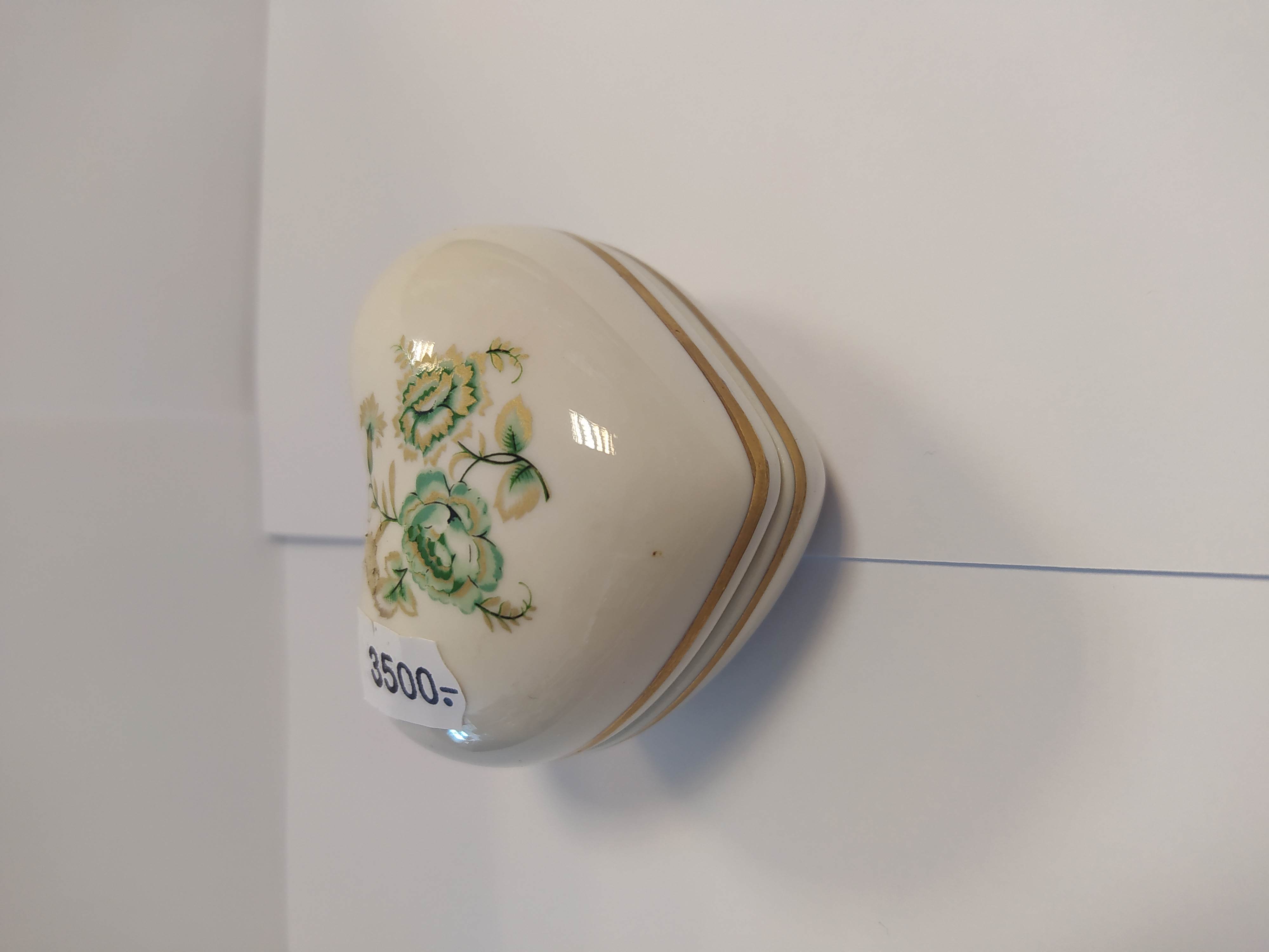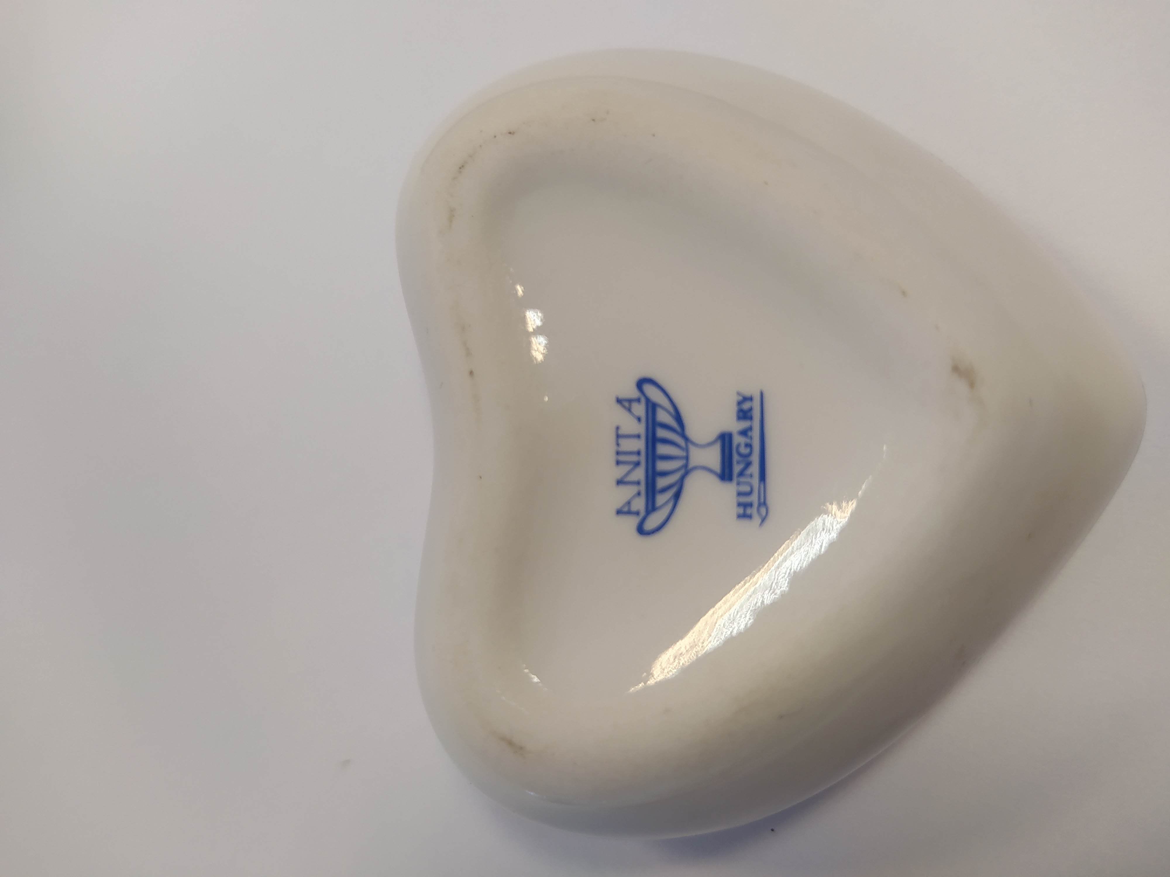 Antik porcelán szív alakú tároló, alján jelzéssel, képen látható állapotban.