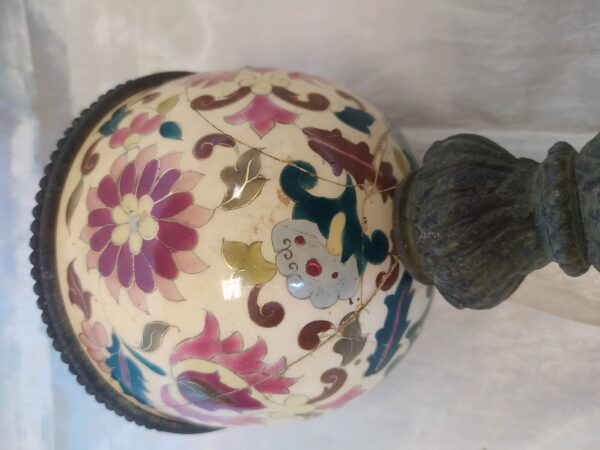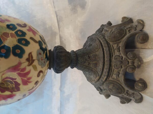 Antik Zsolnay porcelán lámpatest, repedezett képen látható.