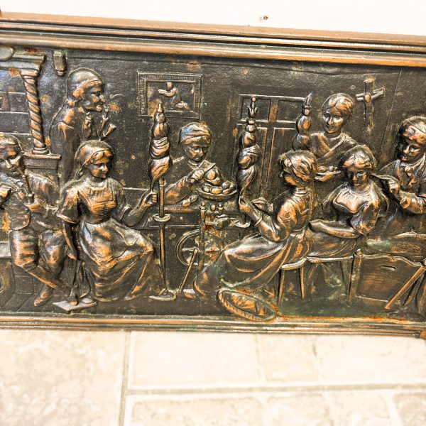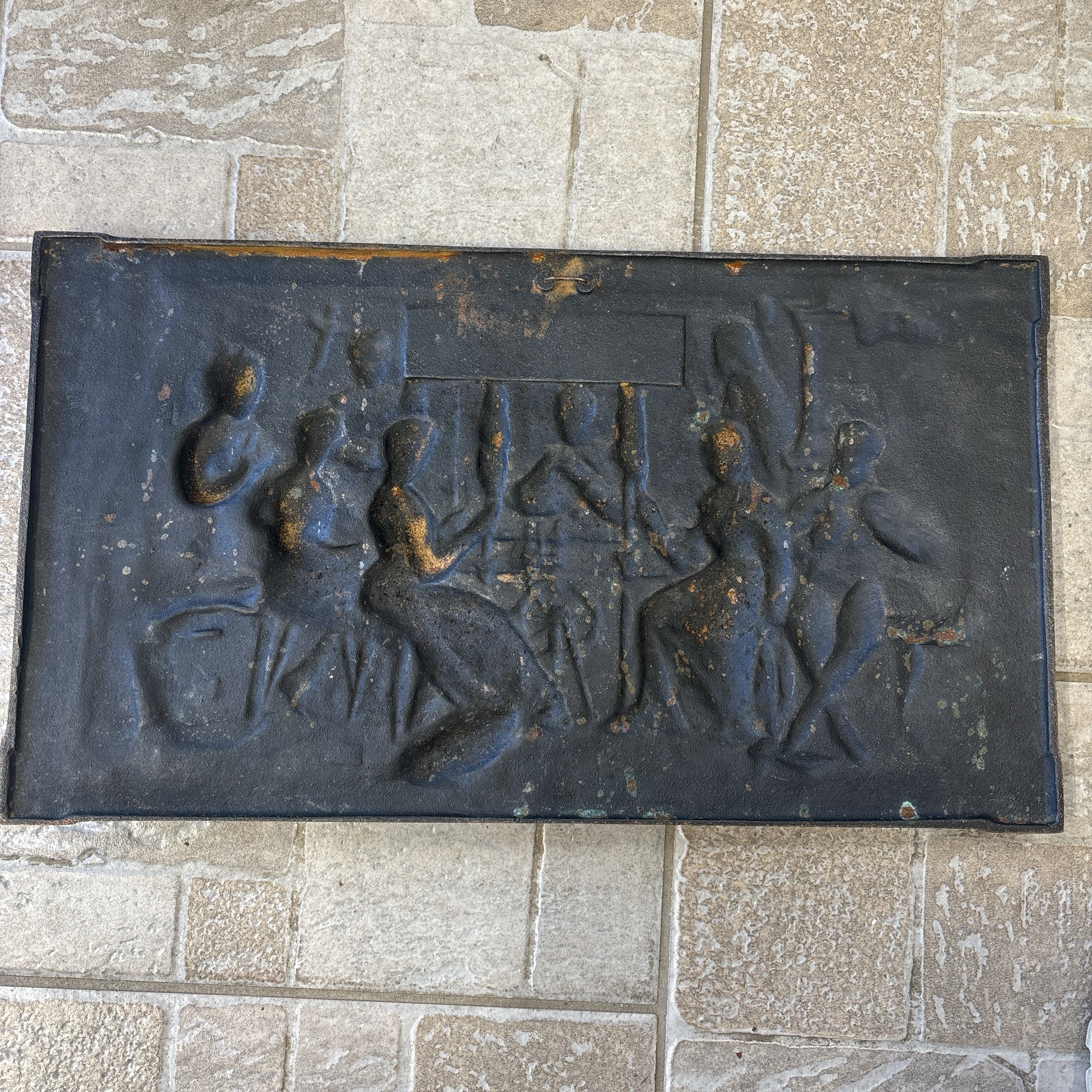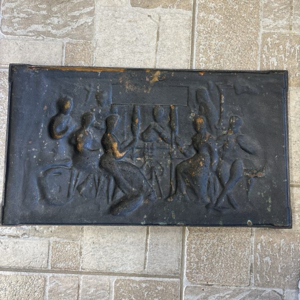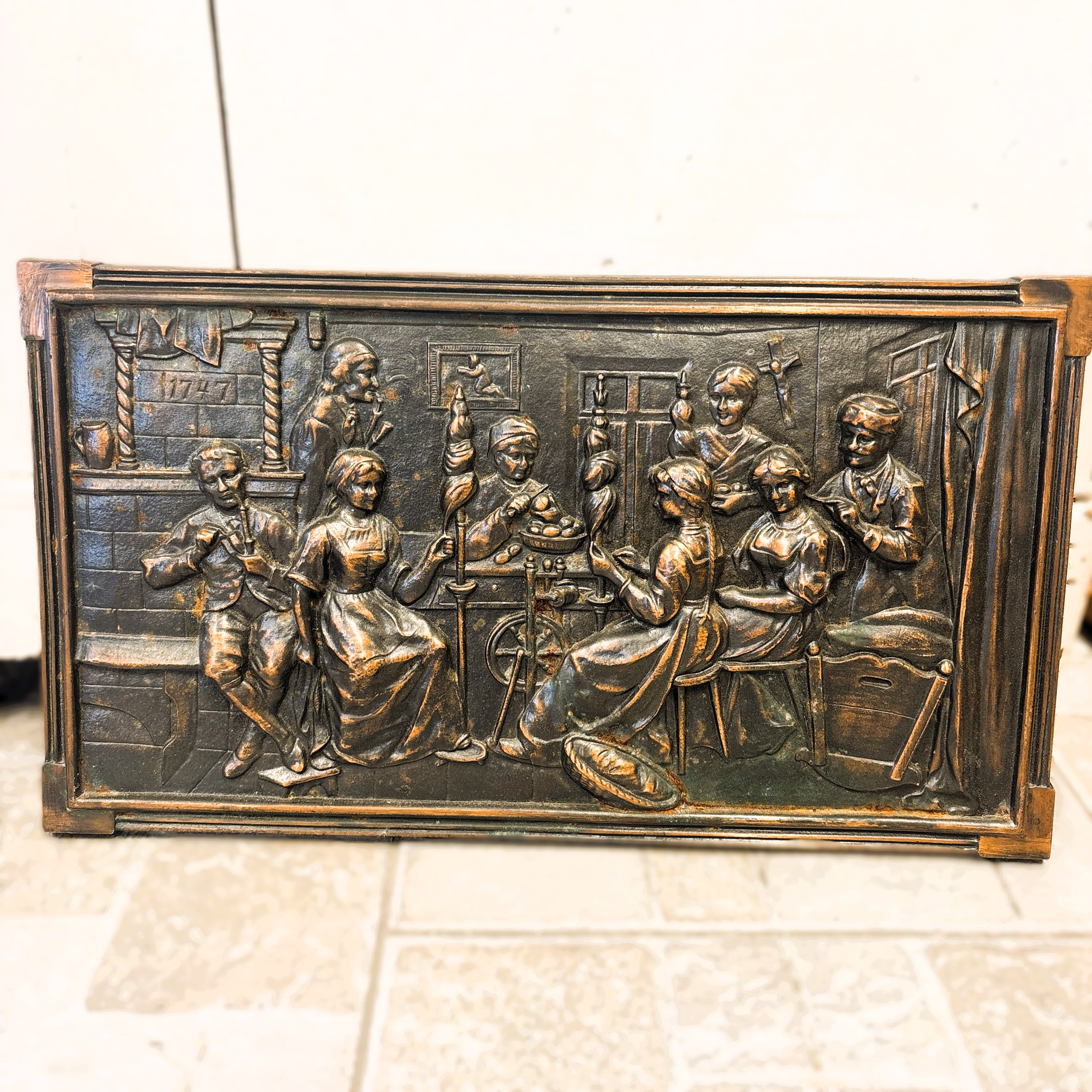 Nagy méretű antik fali dombormű bronzírozott fémből, tömör masszív darab, 4,1 kg, 45x26cm.