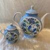 Dekoratív porcelán teáskanna cukortartóval