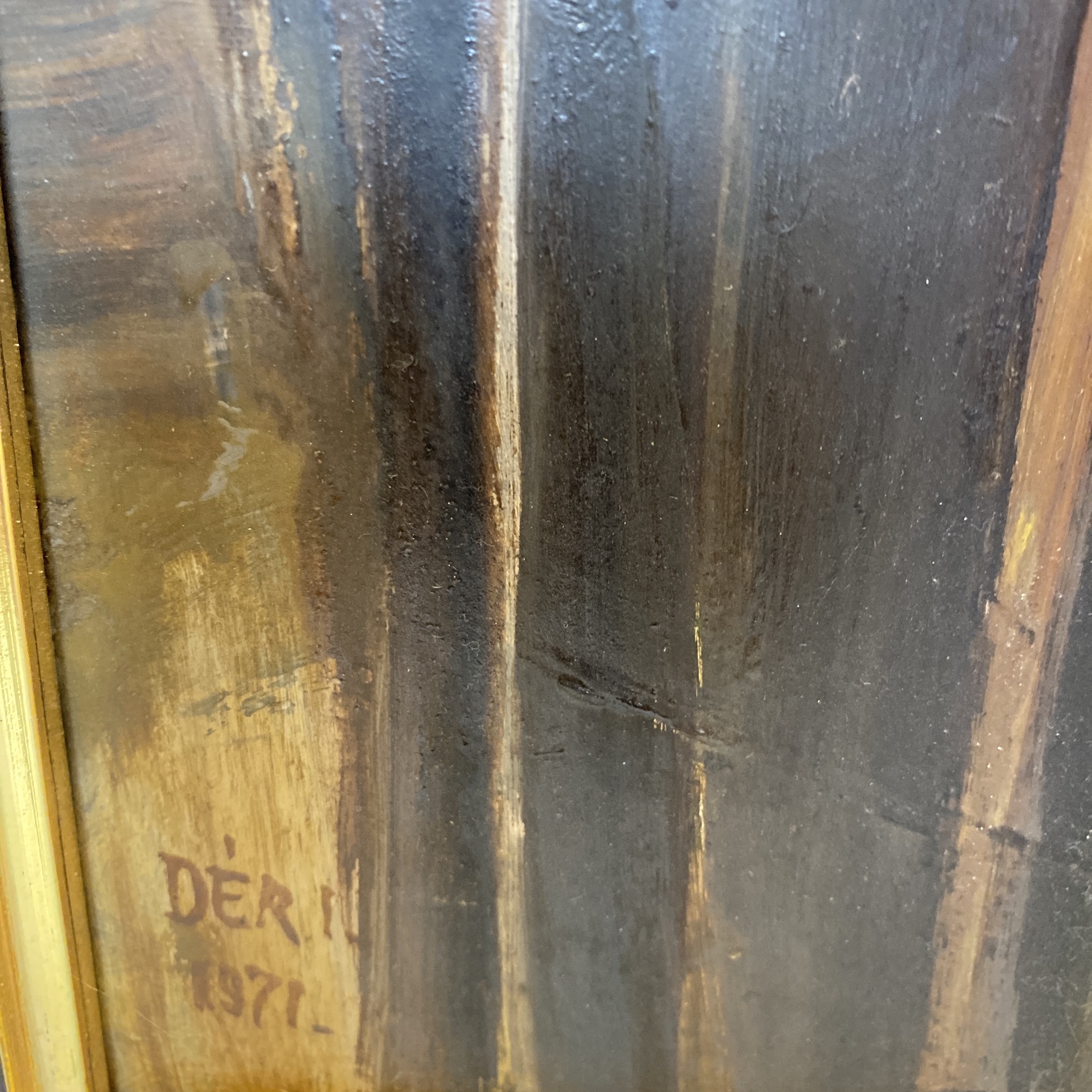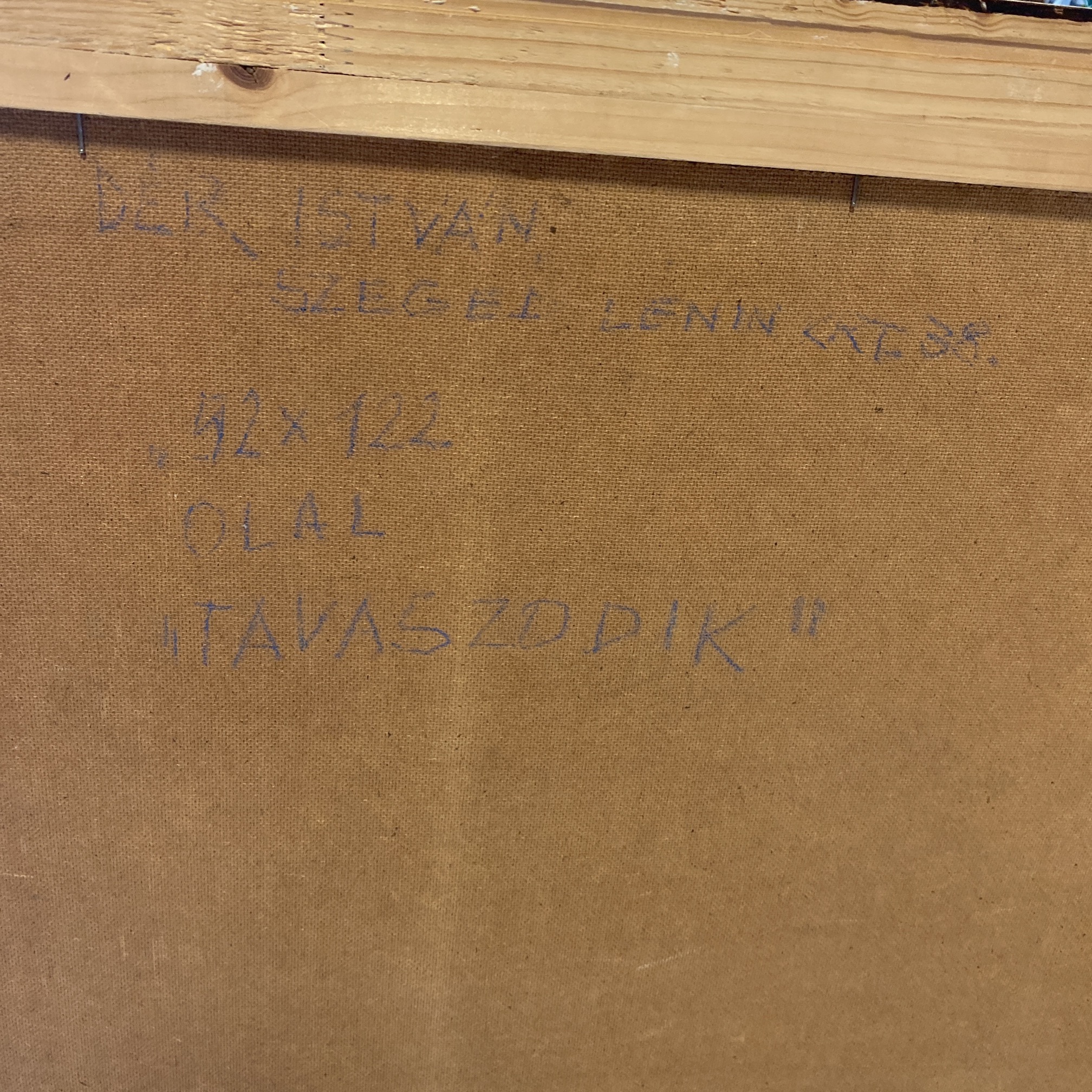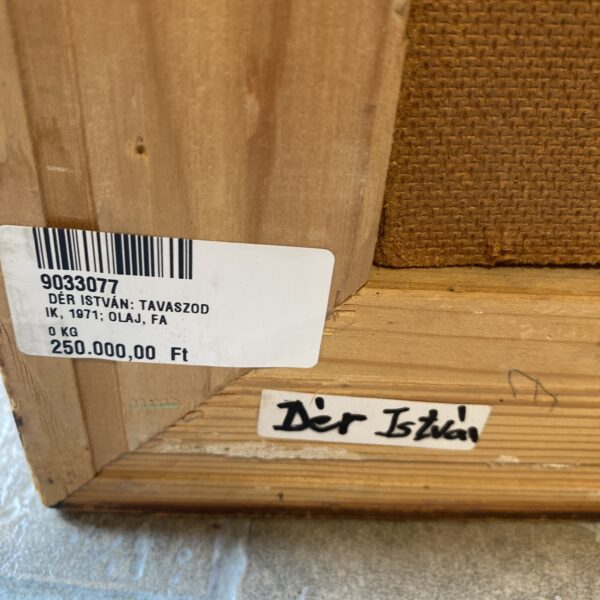 Gyűjteményből eladó, anno a báv-ból vásárolt különleges olajfestmény, fán. Dér István, Tavaszodik című műve, 123*50 cm a kép mérete keret nélkül. Jelezve balra lent: Dér I 1971.