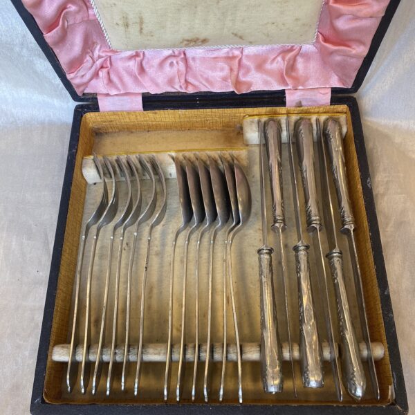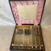 Evőeszköz készlet dobozában, a képeken látható állapotban.