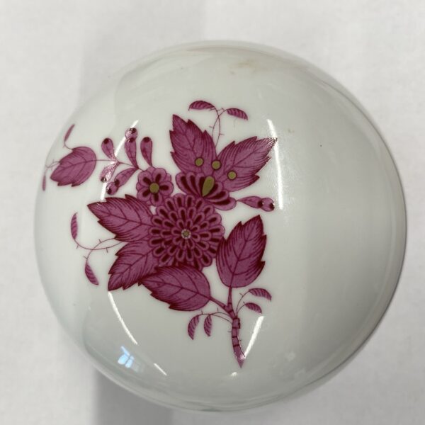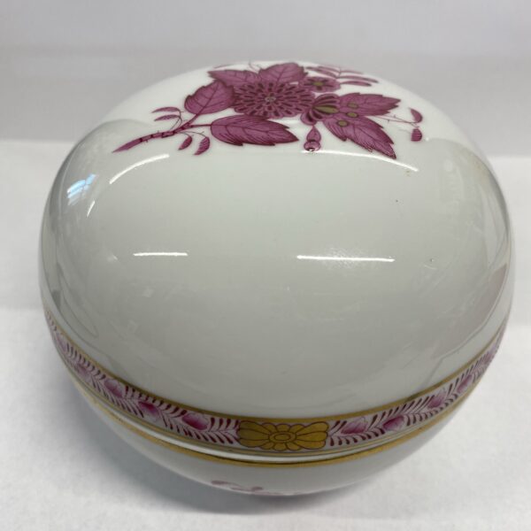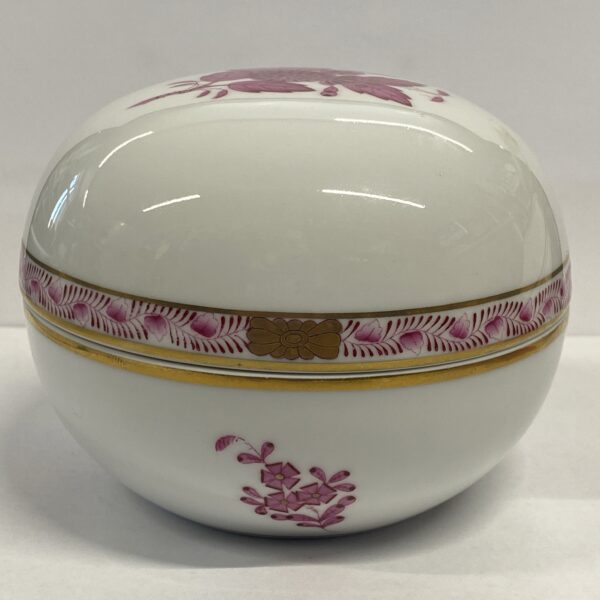 Gyönyörű hibátlan Herendi Apponyi mintás porcelán doboz, bonbonier nagy méretben. Vitrin állapot, kopás-karc mentes, ajándéknak is tökéletes. 12 cm átmérőjű, 9 cm magas.