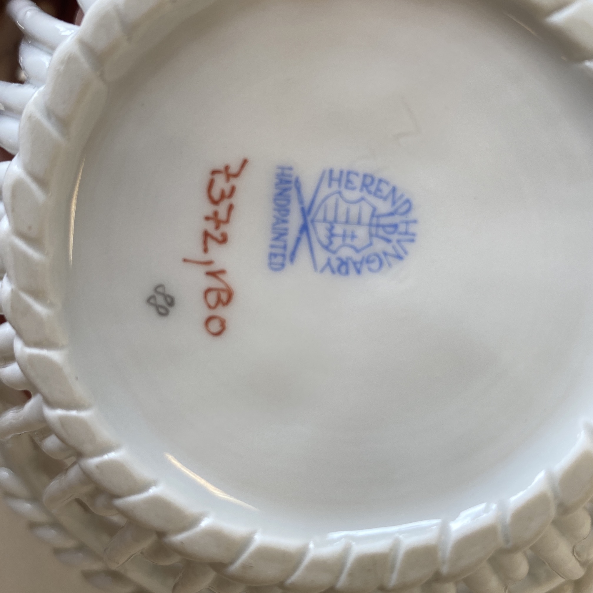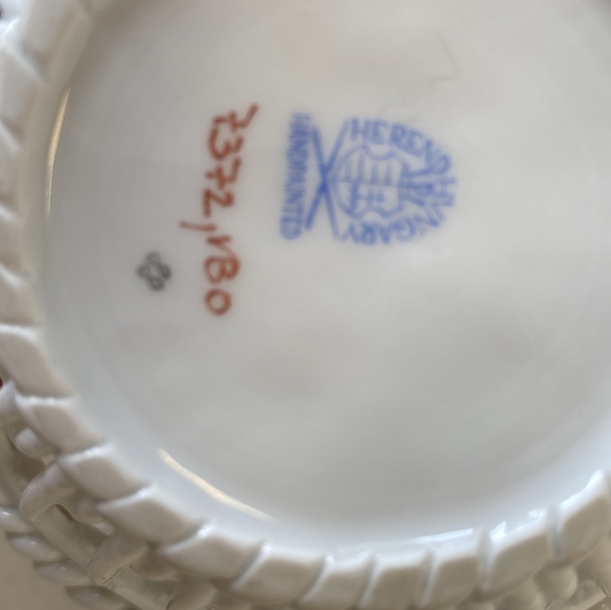 Gyönyörű Herendi VBO áttört mintás kosárka, jelzett, a képeken látható állapotban.