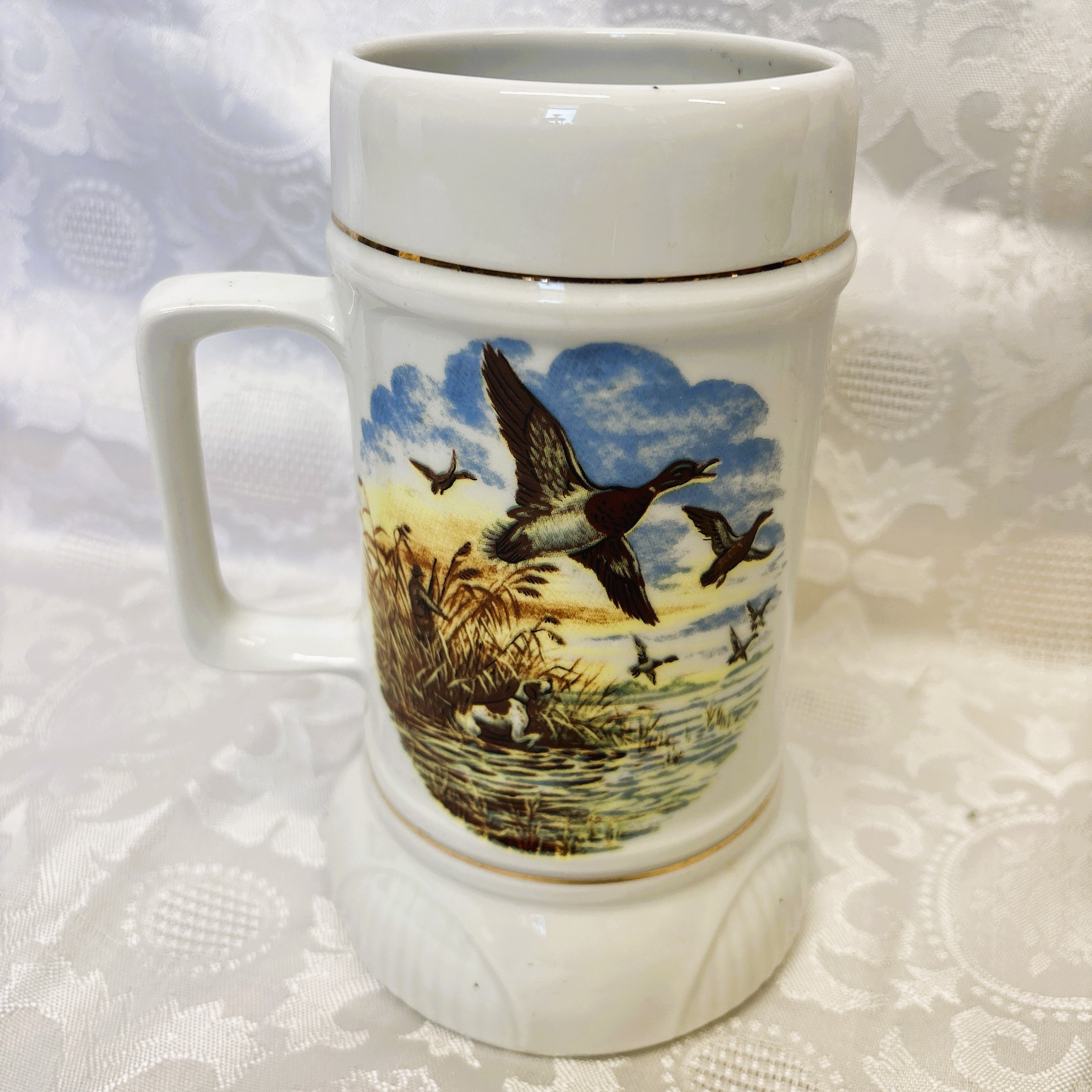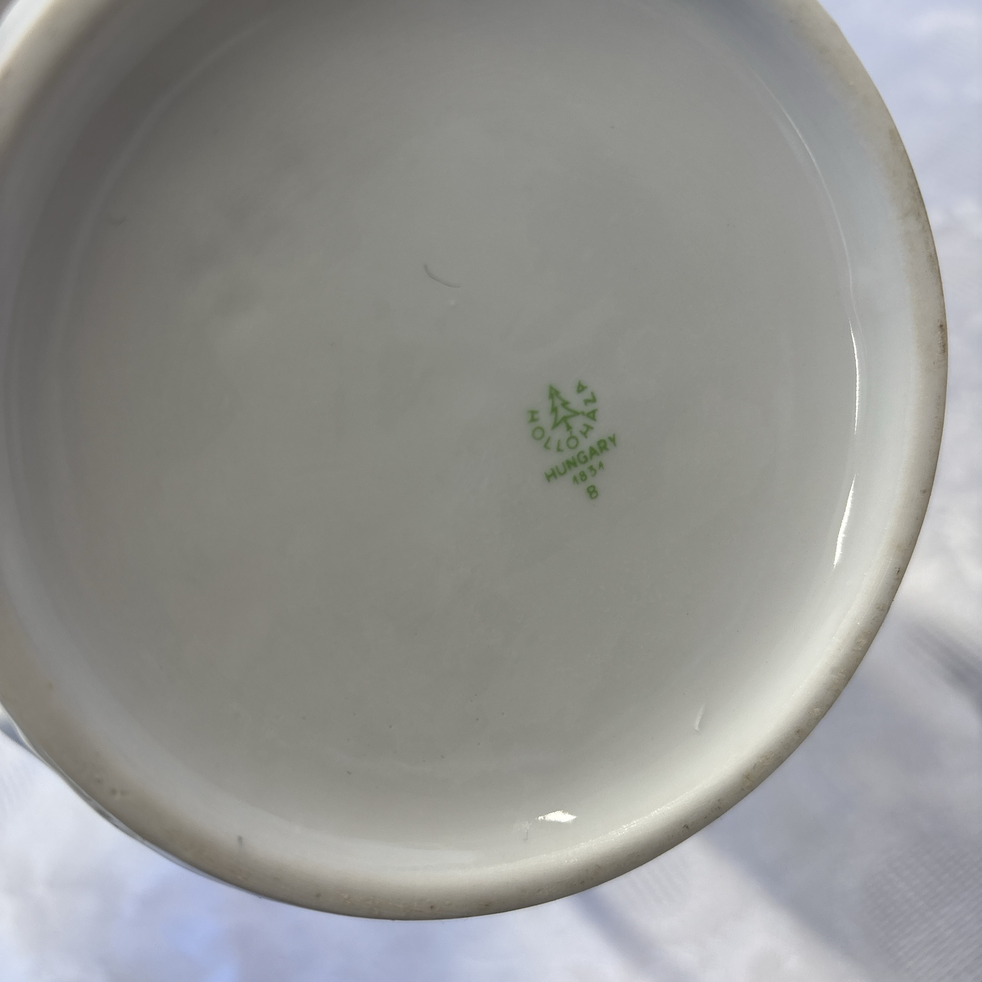 Hollóházi vadász jelenetes korsó hibátlan állapotban, alján jelzett, 18 cm magas, átmérő 11 cm.