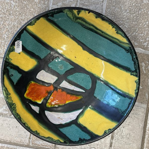 22 cm átmérőjű, hibátlan állapotú retro magyar kerámia falitál valószínűleg Karácsony Zsuzsa által készített, igazi retro gyűjői darab.