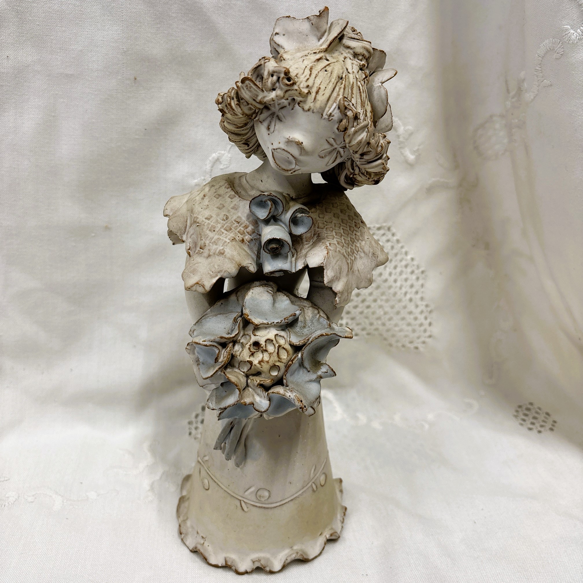 Kovács Éva kerámia szobor “Lány virágcsokorral”