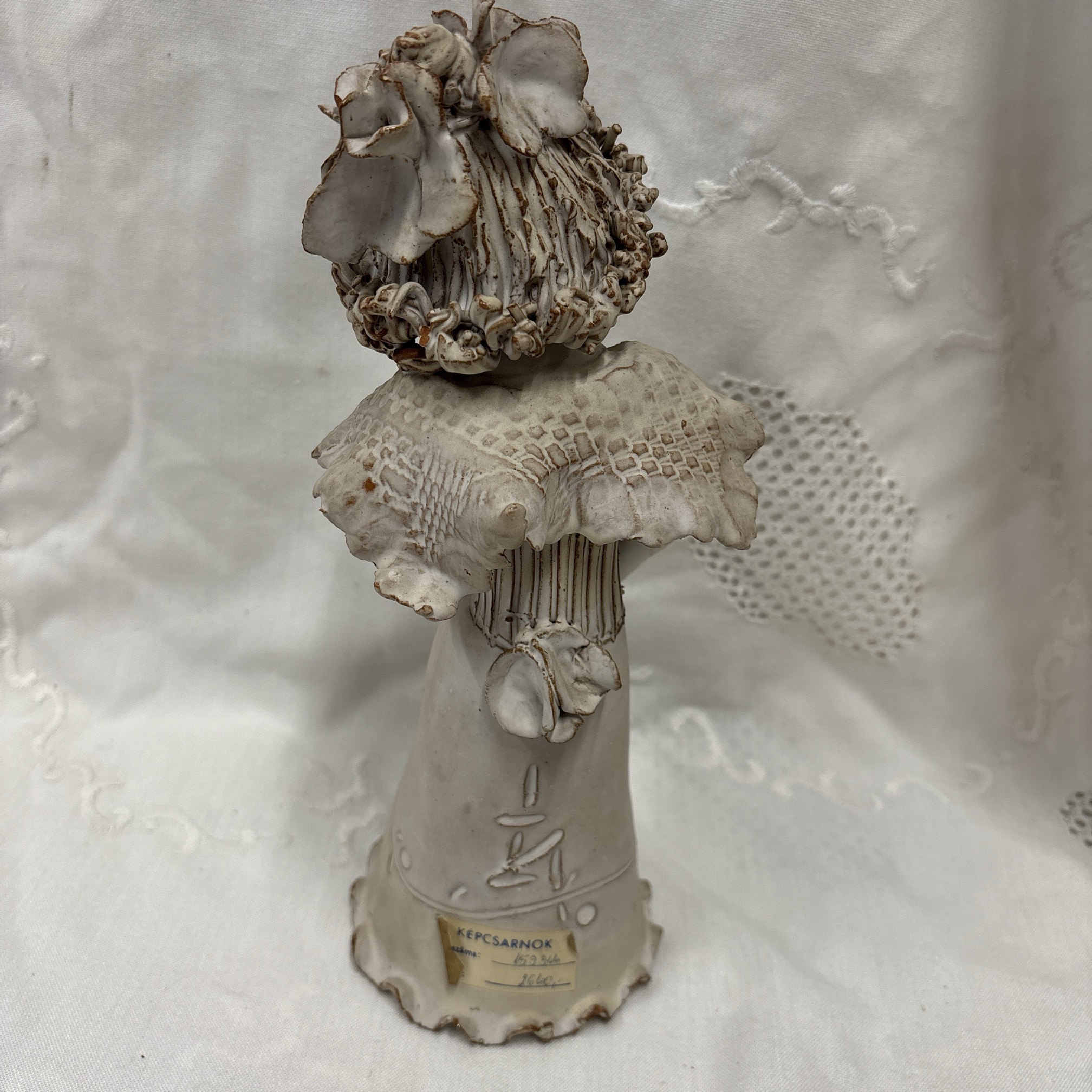 Gyönyörű és bájos szobor Kovács Éva keramikustól, hibátlan állapotban, iparművészeti vállalat által zsűrizett, rajta a cimke, jelzett, 28 cm magas.