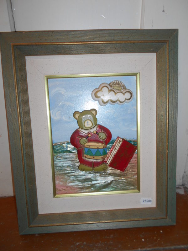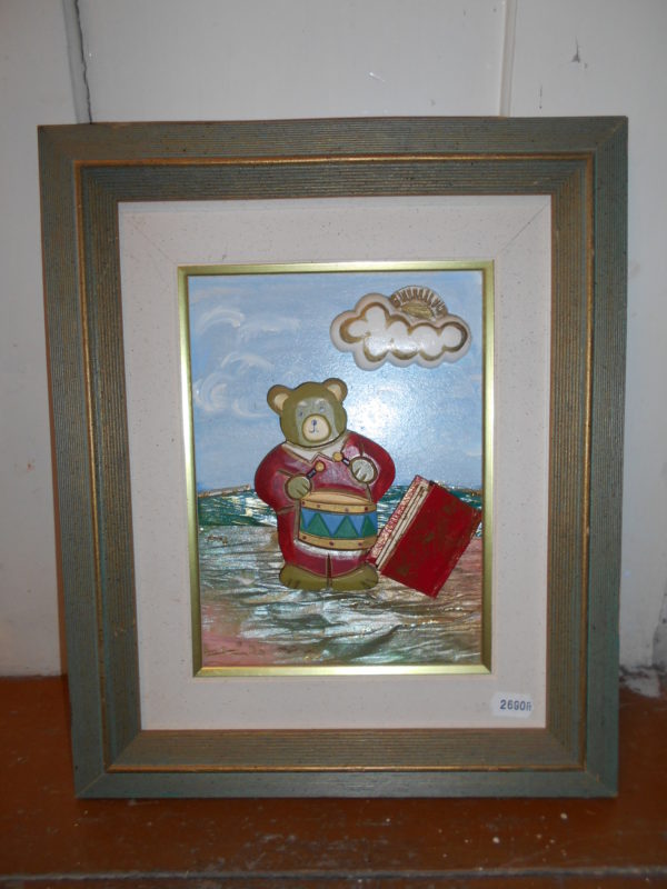 Fakeretes, dombor mintás macis kép. Gyerekszoba dísznek nagyon kedves ajándék.