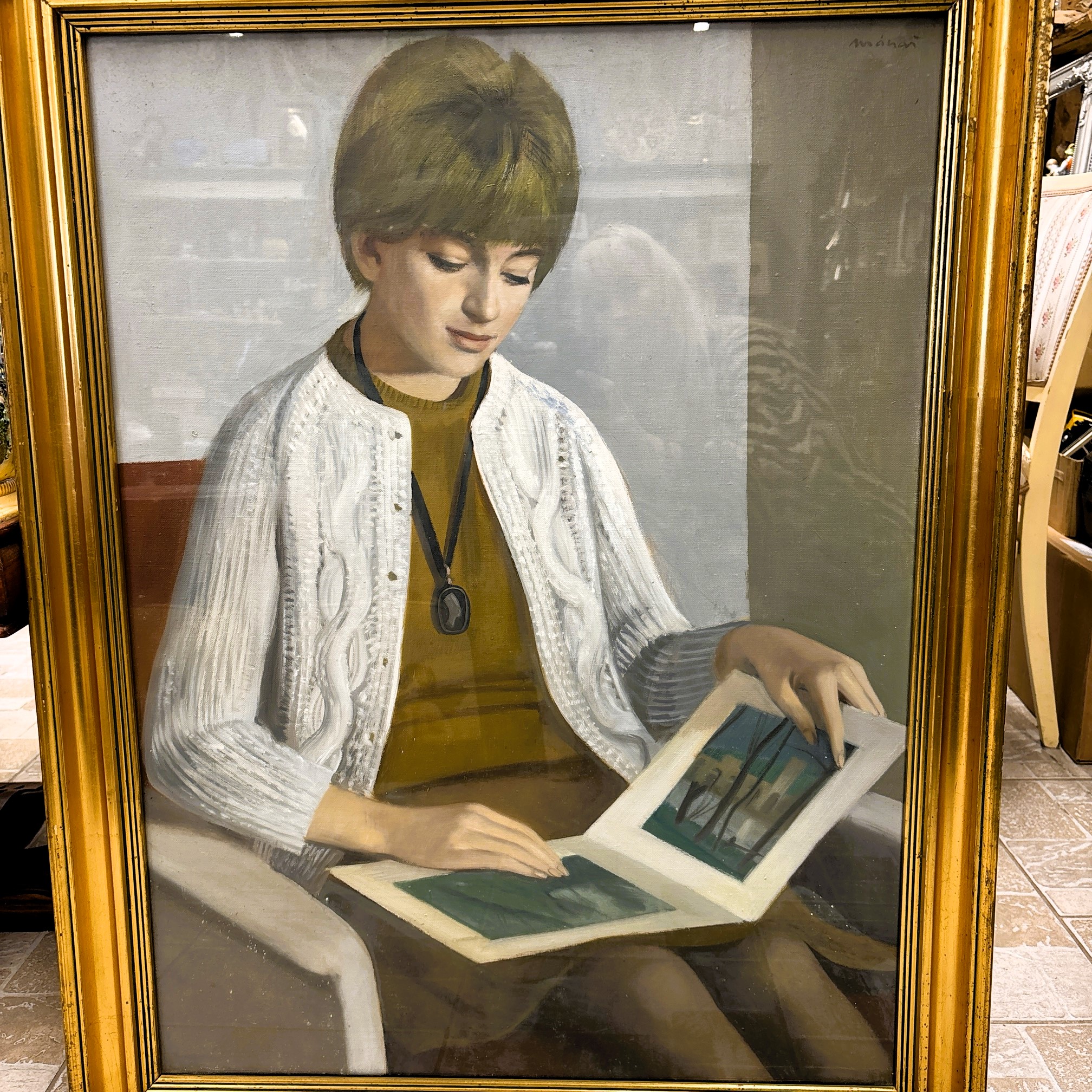 Mácsai István – “Olvasó lány” képcsarnokos nagyméretű olajfestmény