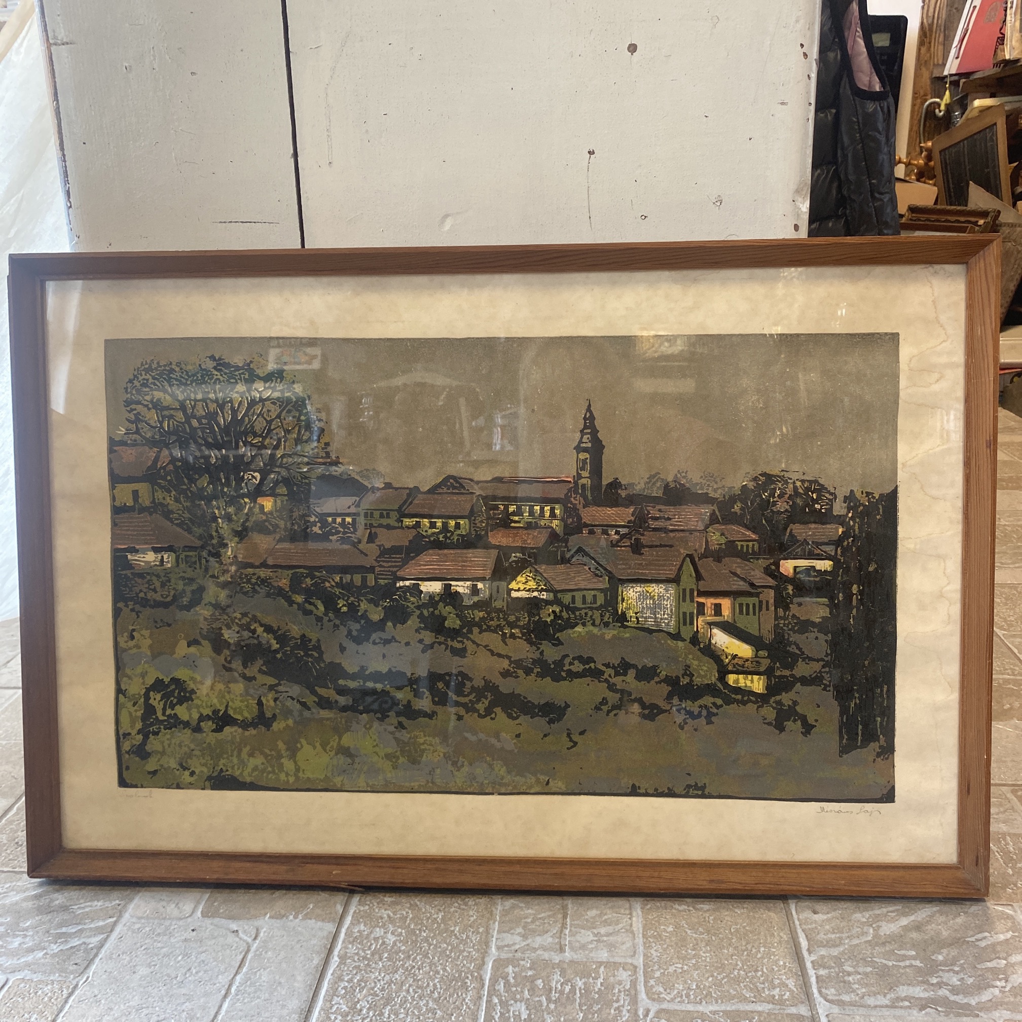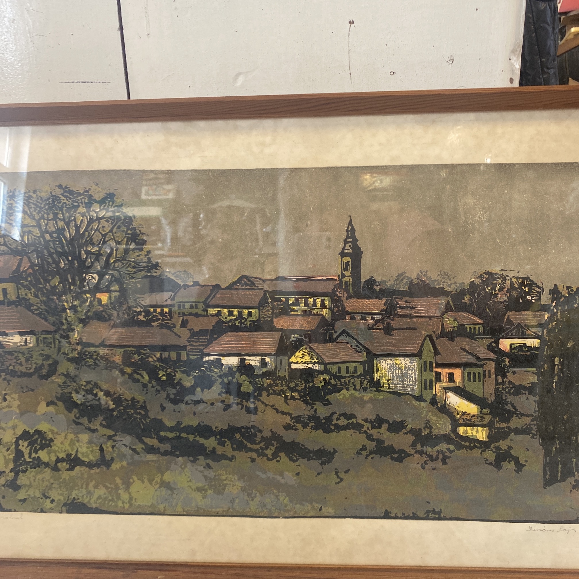 Linómetszet, papír 36 x 60 cm jelzés jobbra lent: Mészáros Lajos