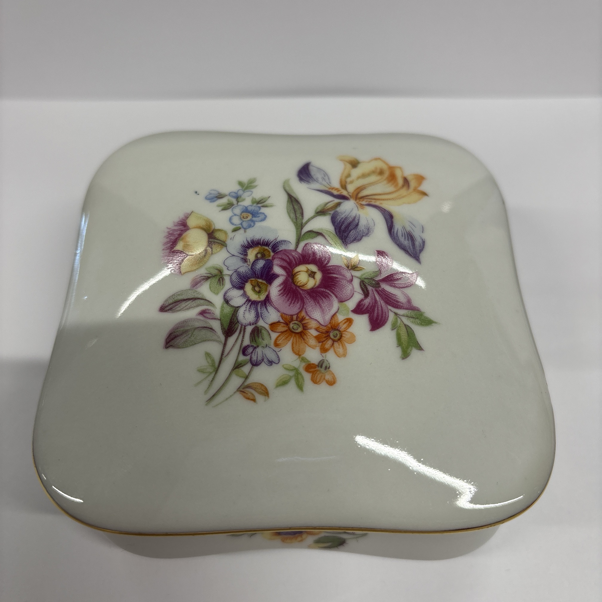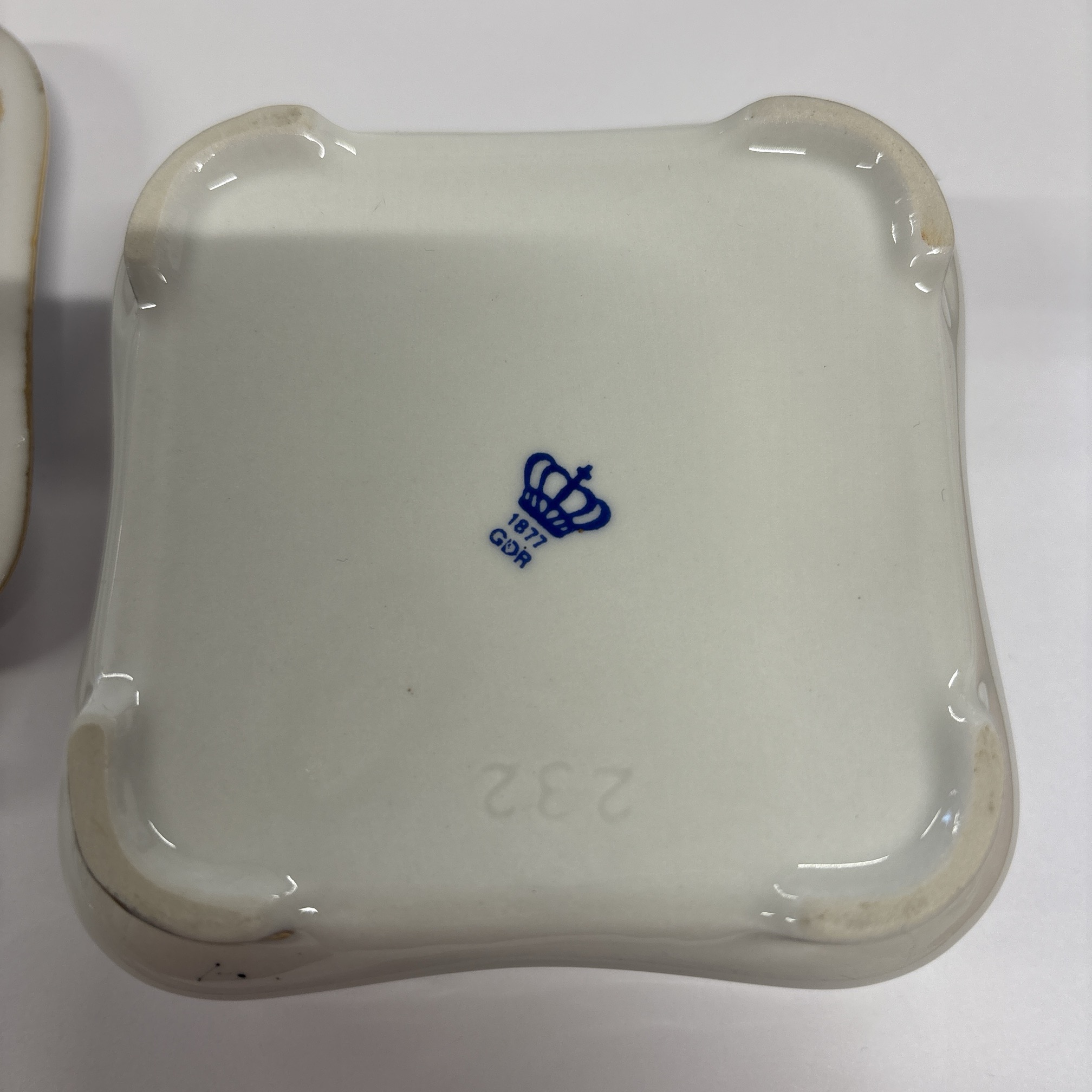 Gdr porcelán doboz hibátlan állapotban, 10x10x5 cm, alján jelzett, kopásmentes.