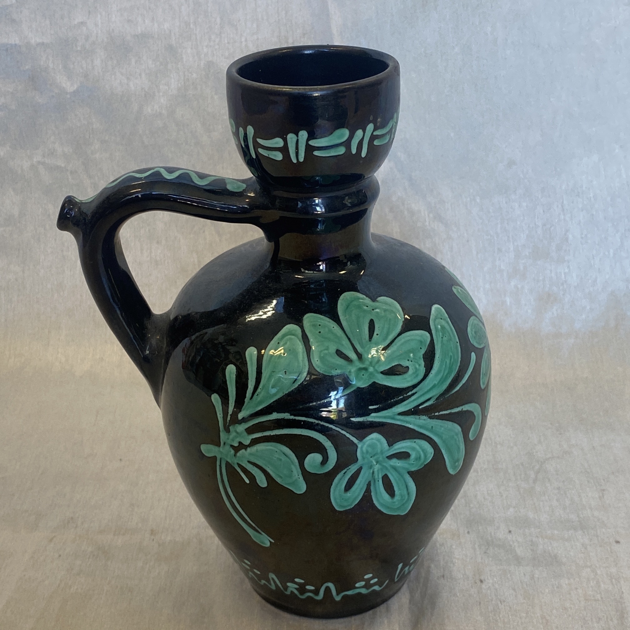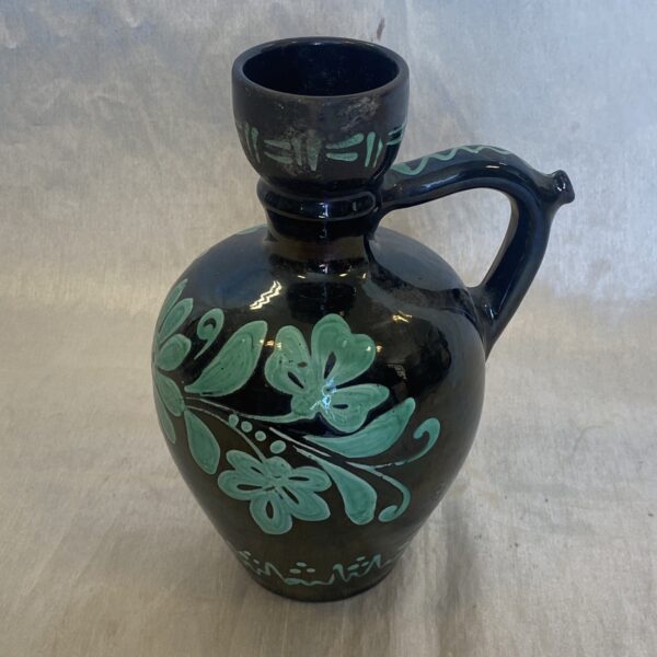 Népi kerámia butykoskorsó, virág mintával díszítve, alján jelzéssel.Képen látható.