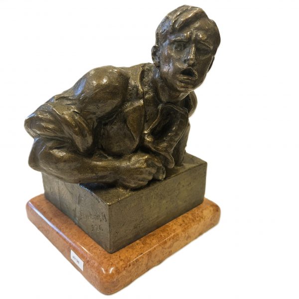 Pankotai Farkas Béla (1885 – 1945) szobrászművész alkotása 1926-ból, mely a Lentiben található I. Világháborús emlékművének egy részletét ábrázolja. Tömör bronz, márvány talapzaton, közel 13 kg! 27×25 cm, 28 cm magas. Igazi gyűjteményi ritkaság! Jelzett, pesti aukciósházból származik. Az eredetiségét szakértő igazolta.
