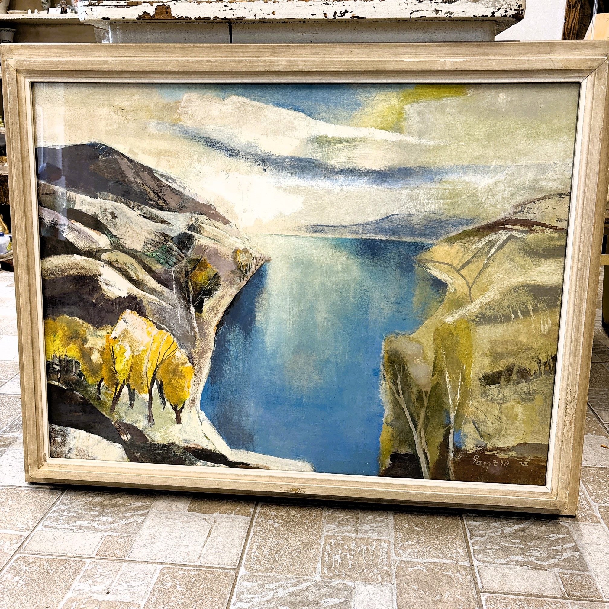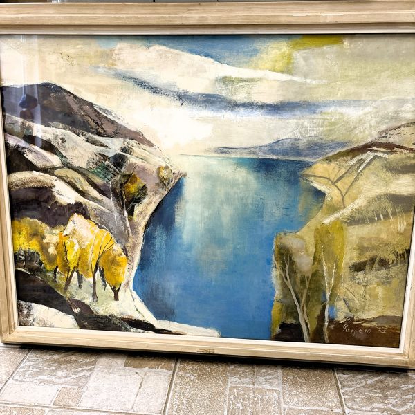 Eladó 1979-ben készült “Öböl” című olajfestménye, hibátlan állapotban, farost lemez keretben, 90×71 cm, jelezve jobbra lent. Képcsarnokban vásárolt, garantáltan eredeti, hátulján a képcsarnokos és a művész jelzése is látható. Különleges színvilágú, gyönyörű festmény.