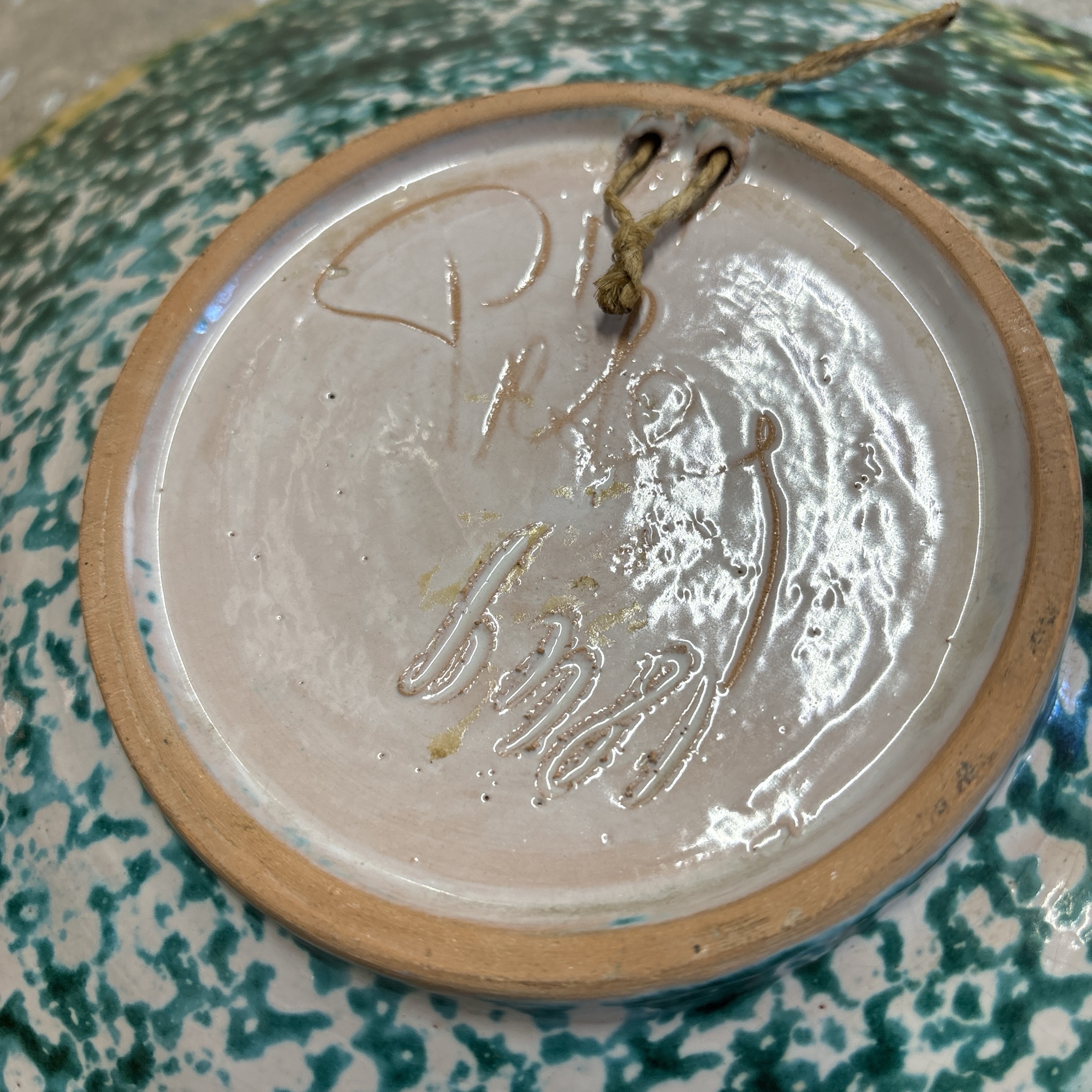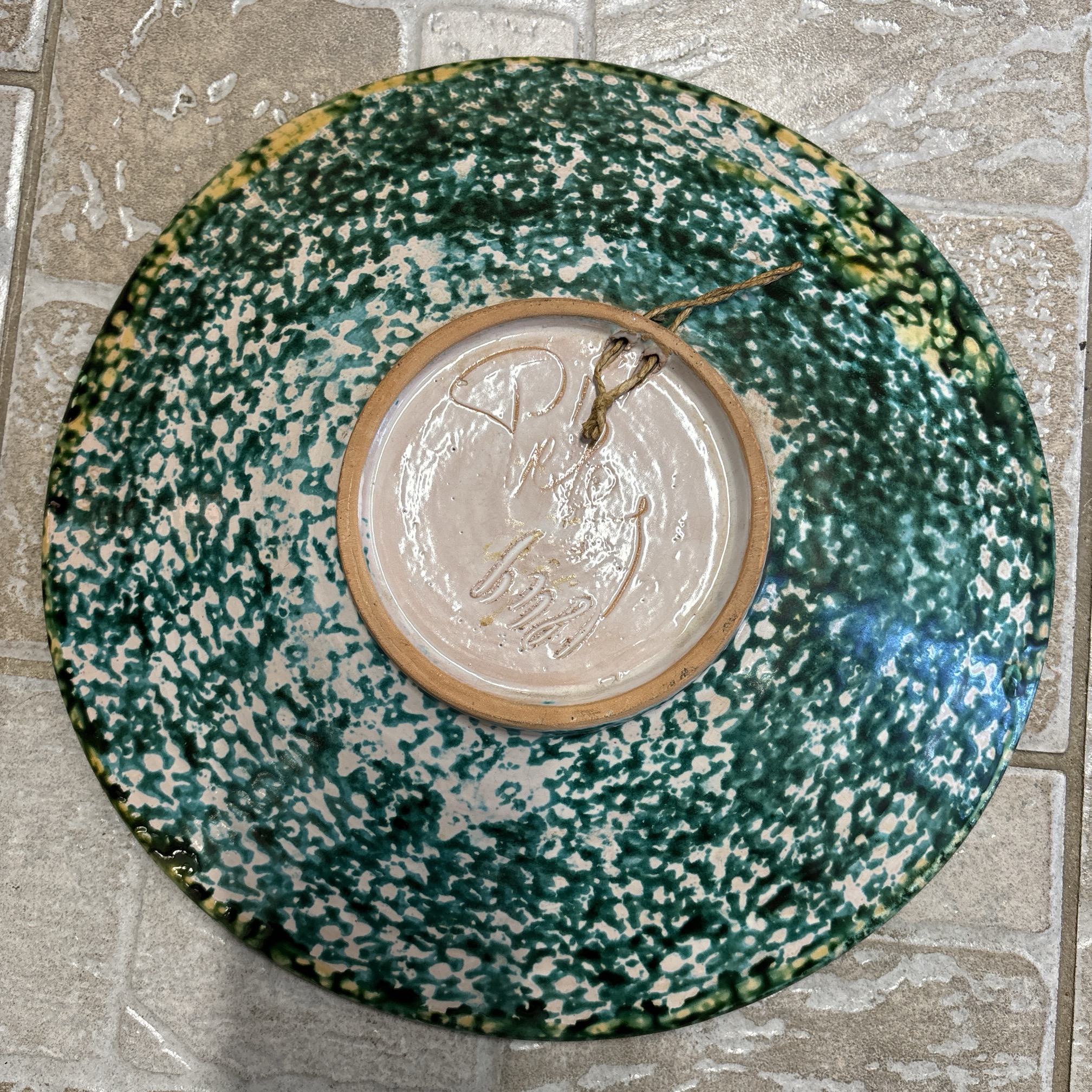 Hibátlan állapotú Péter Ferenc keramikus által készített iparművészeti fali dísztányér, jelzett, 29 cm átmérőjű.