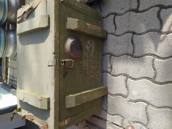 Retro katonai láda, képen látható állapotban.