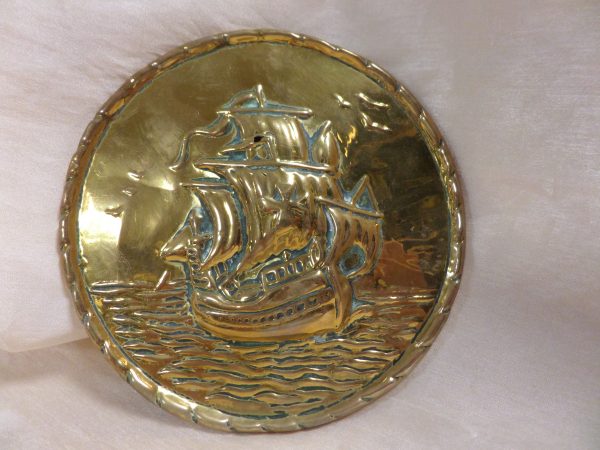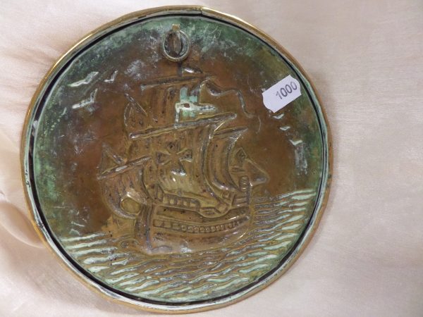 Réz domborított tábla, hajó motívummal