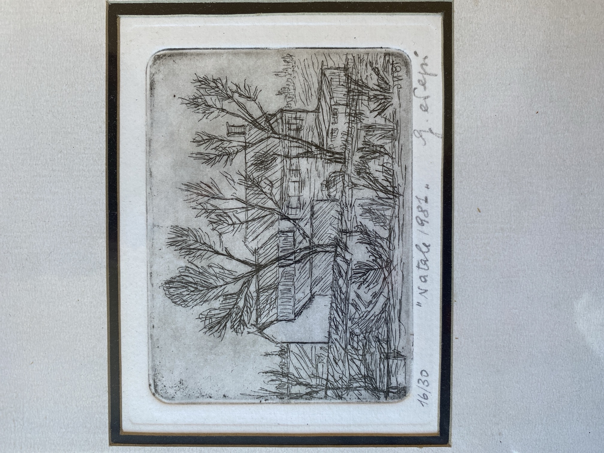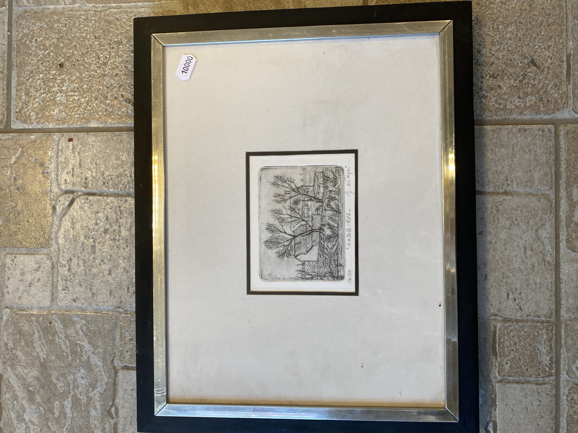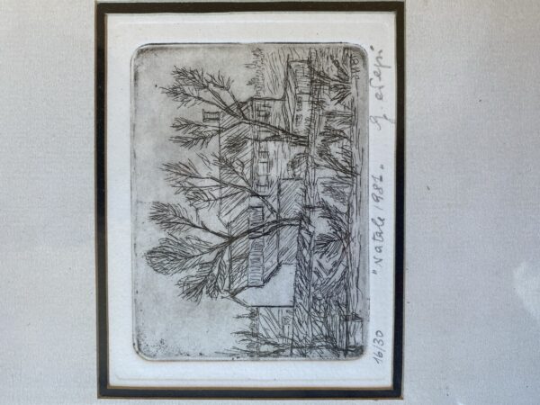 Rézkarc kép- falusi táj, képen látható állapotban.