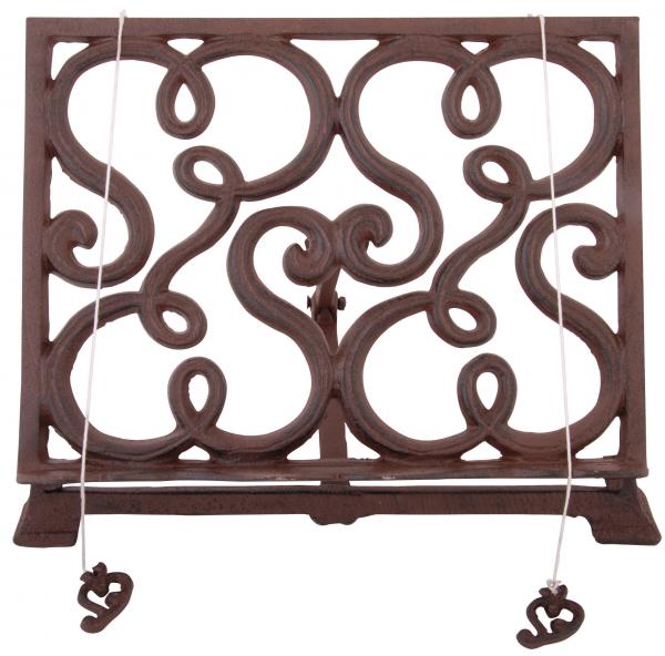 Öntöttvas szakácskönyvtartó talpon, 2 nehezékkel.