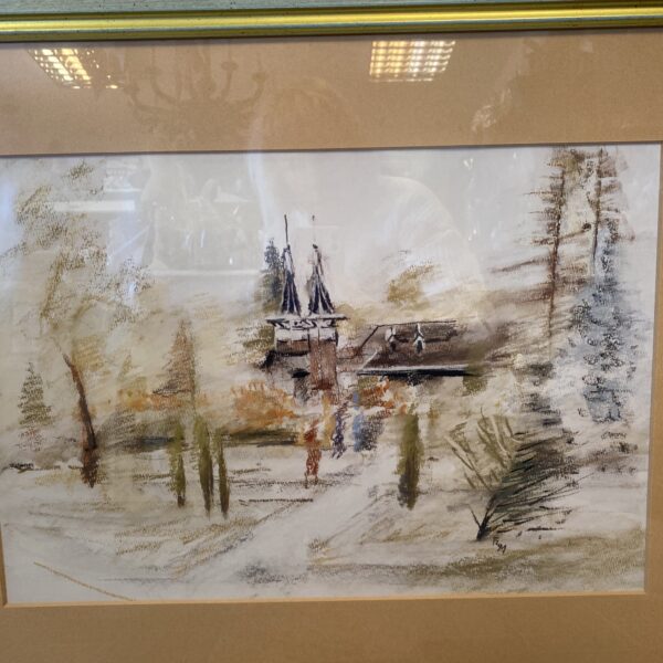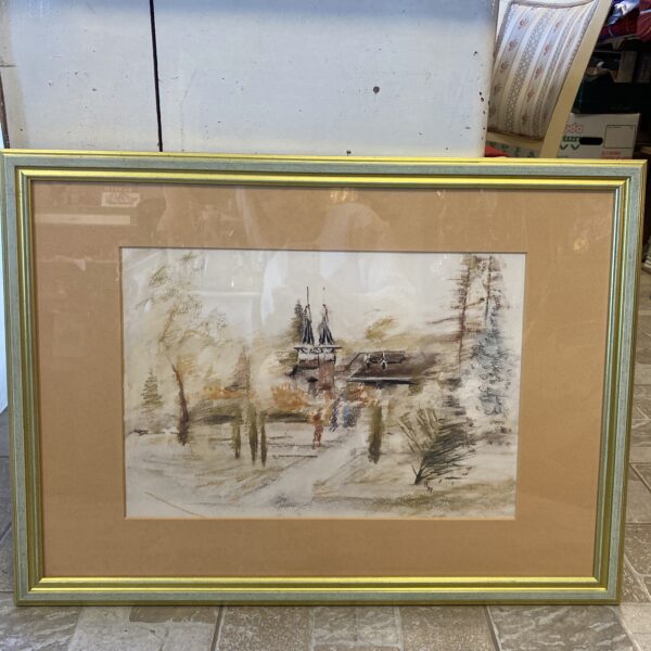Tájkép házzal- arany keretben