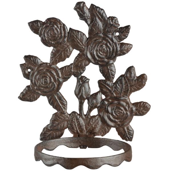 Antik barna öntöttvas virágtartó cserépnek, klasszikus rózsa mintával.