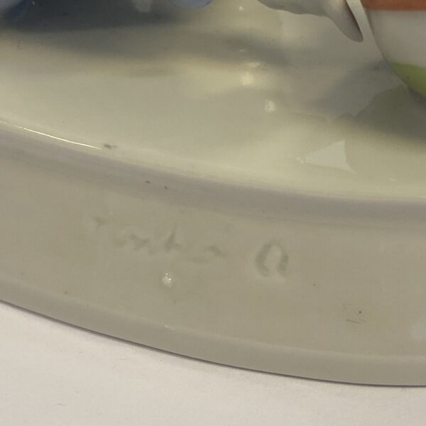 Hibátlan állapotú bájos antik Zsolnay porcelán szobor, Sinkó András által tervezett búgócsigás kisgyermek. 17 cm hosszú, 13 cm magas.  Alján jelzett, oldalán Sinkó nyomás.